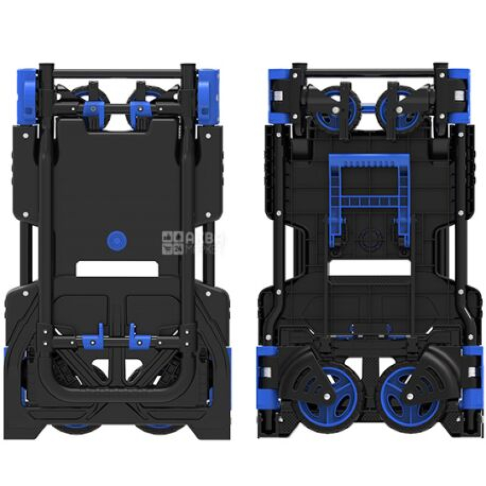 Конструкція візка ViO HTP-136AP дозволяє використовувати його як платформу для перевезення габаритних предметів або як вертикальний візок для більш компактного транспортування. Завдяки розмірам 45,8×77,7×68/80/92 см у форматі платформи та 45,8×41,6×110/122/134 см у форматі ручного візка, він адаптується до потреб користувача. Складена форма 38,9×11,7×64 см робить зберігання візка надзвичайно зручним навіть у невеликих приміщеннях або в багажнику автомобіля.
