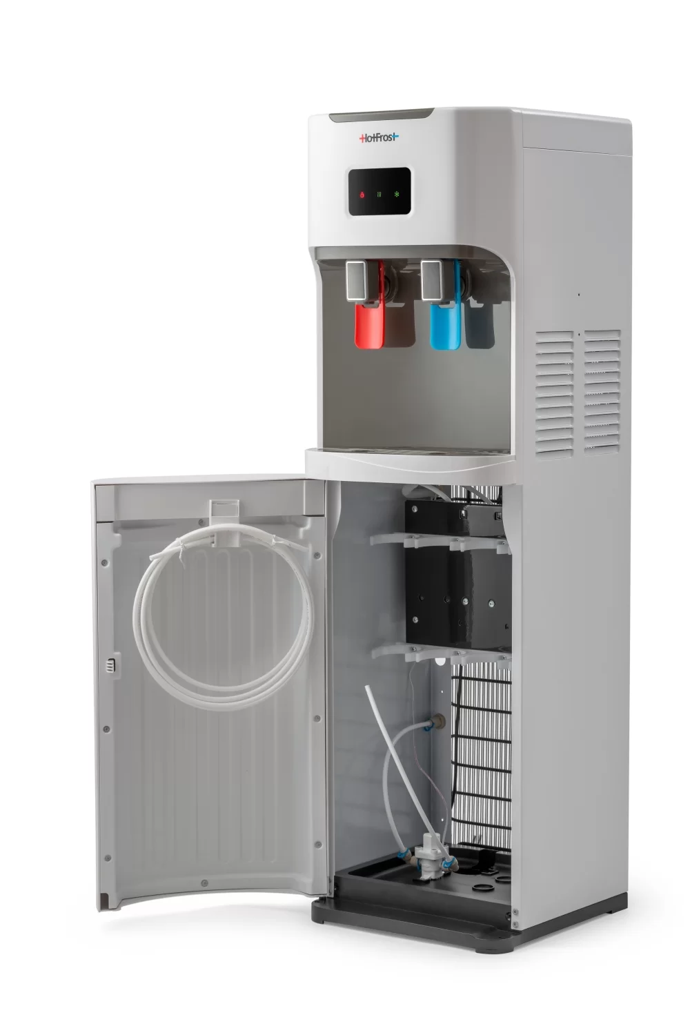 Пурифайер HotFrost V115 PUF - це новий вид кулера напольного типу для глибокого очищення води. Такі прилади, на відміну від звичайних кулерів,безпосередньо підключаються до водопроводу,що автоматично роблять їх економічно вигідним рішенням для постійного забезпечення чистою водою як офісів, так і приватних будинків за допомогою 4-х ступенів очистки. Вони відрізняються досить високою швидкістю фільтрації, простотою у використанні, надійністю і довговічністю, а функції нагрівання та охолодження, як у традиційного кулера, зроблять побут простіше і затишніше.
