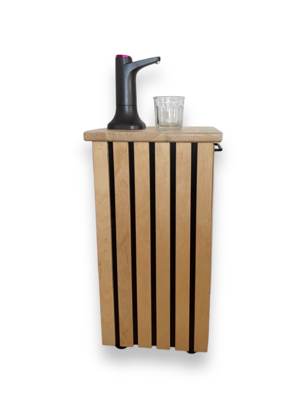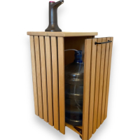 Високоякісна акумуляторна помпа для води з декоративною тумбою. Наша тумба з натуральних матеріалів виконує не тільки декоративну функцію, вона також спрощує використання бутильованої води. Тумба стоїть на колісних опорах, що істотно полегшує її переміщення при заміні бутиля. У виробництві використовуються тільки якісні матеріали українського виробництва.