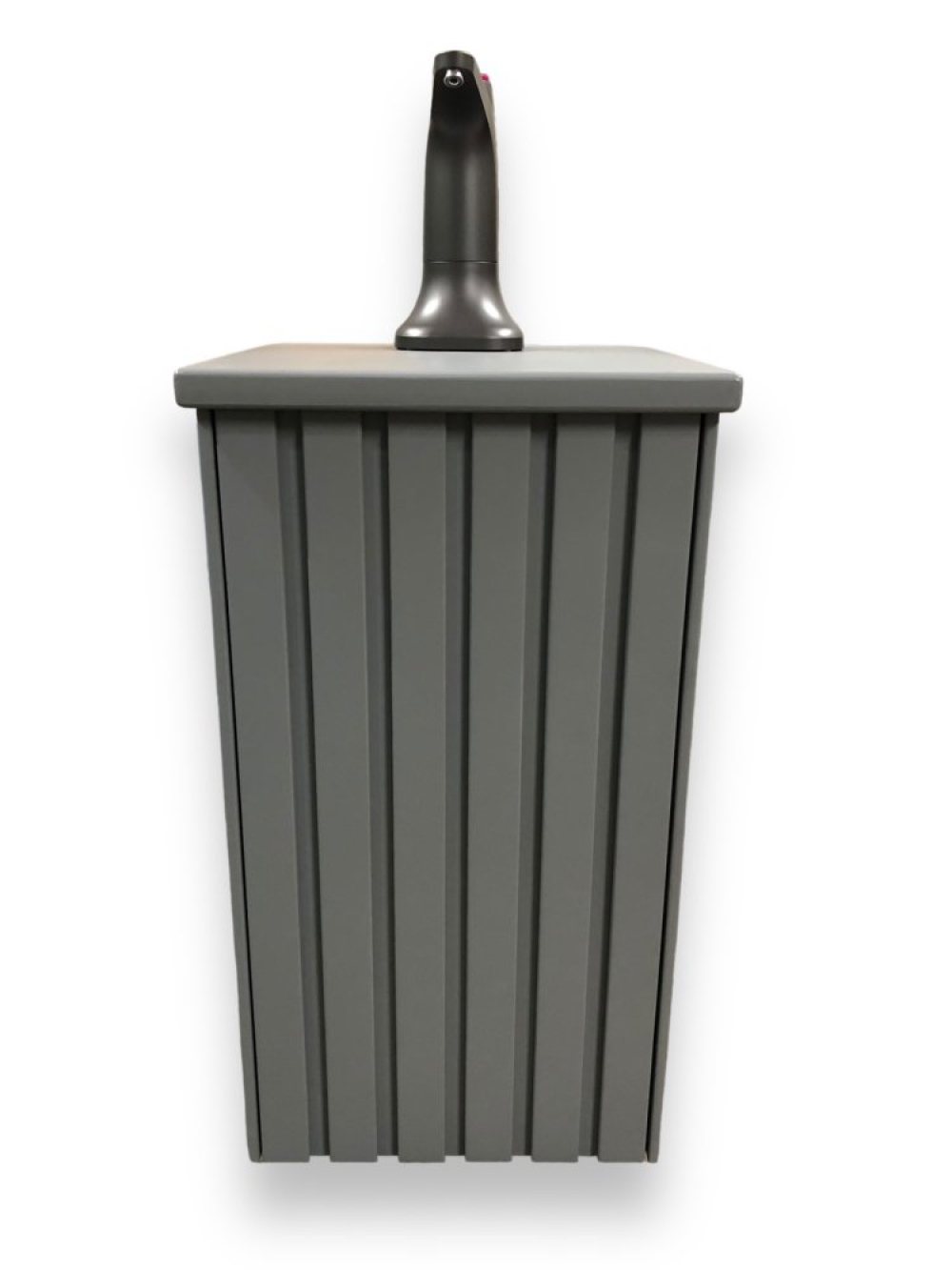 Bелика стільниця і висока акумуляторна помпа дозволяє поставити будь-який посуд для набору води. У тумби є зручний візок за допомогою якого легко і просто підвезти важкий бутиль і замінити його. Немає ніякого переливу води, оскільки помпа має функцію дозування на 600 мілілітрів.