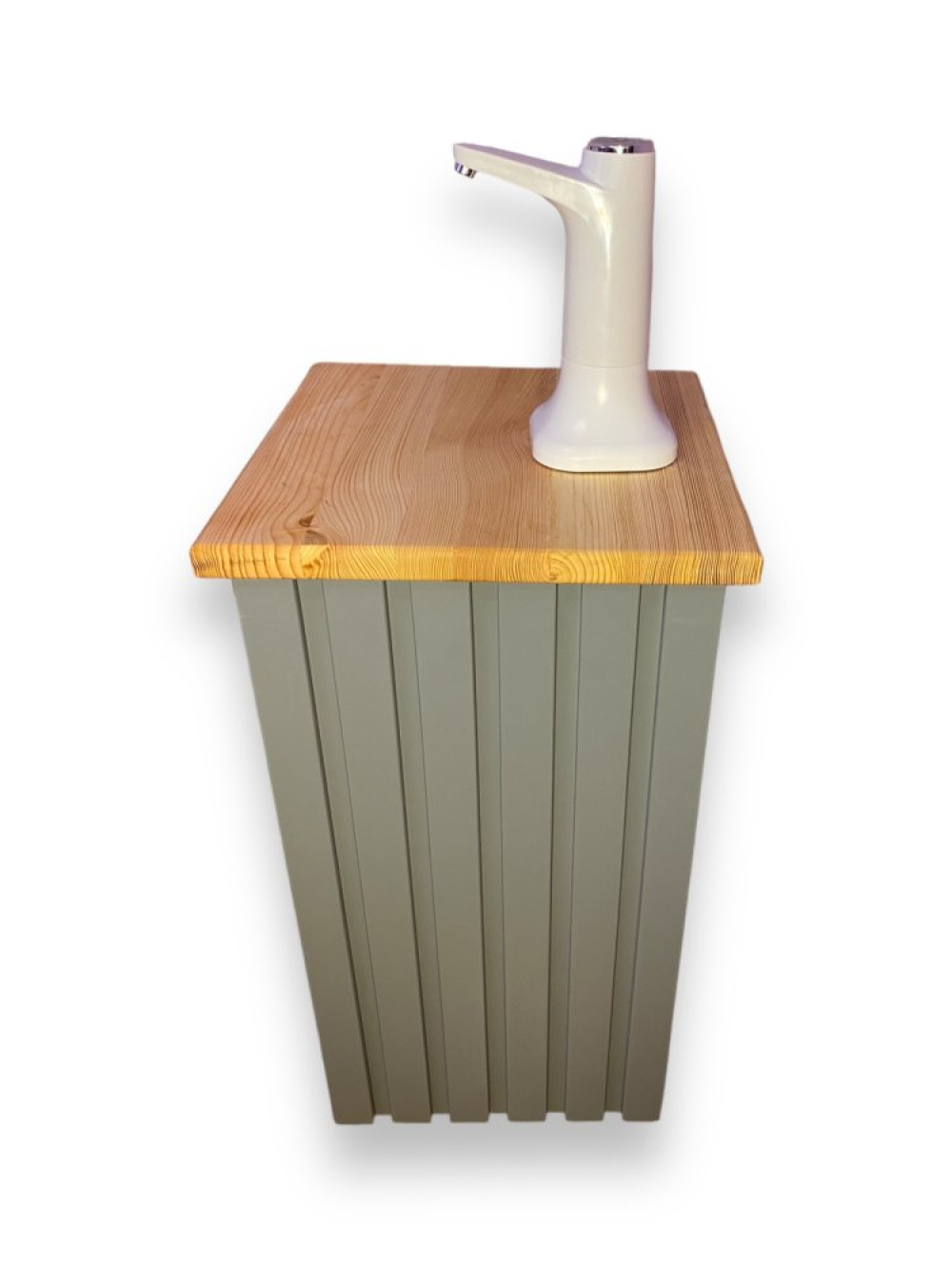 Високоякісна акумуляторна помпа для води з декоративною тумбою. Наша тумба з натуральних матеріалів виконує не тільки декоративну функцію, вона також спрощує використання бутильованої води.Тумба стоїть на колісних опорах, що істотно полегшує її переміщення при заміні бутиля. Тумба не має задньої стінки, так як її завдання наїжджати на бутиль і тим самим ховати його під себе. У виробництві використовуються тільки якісні матеріали українського виробництва.