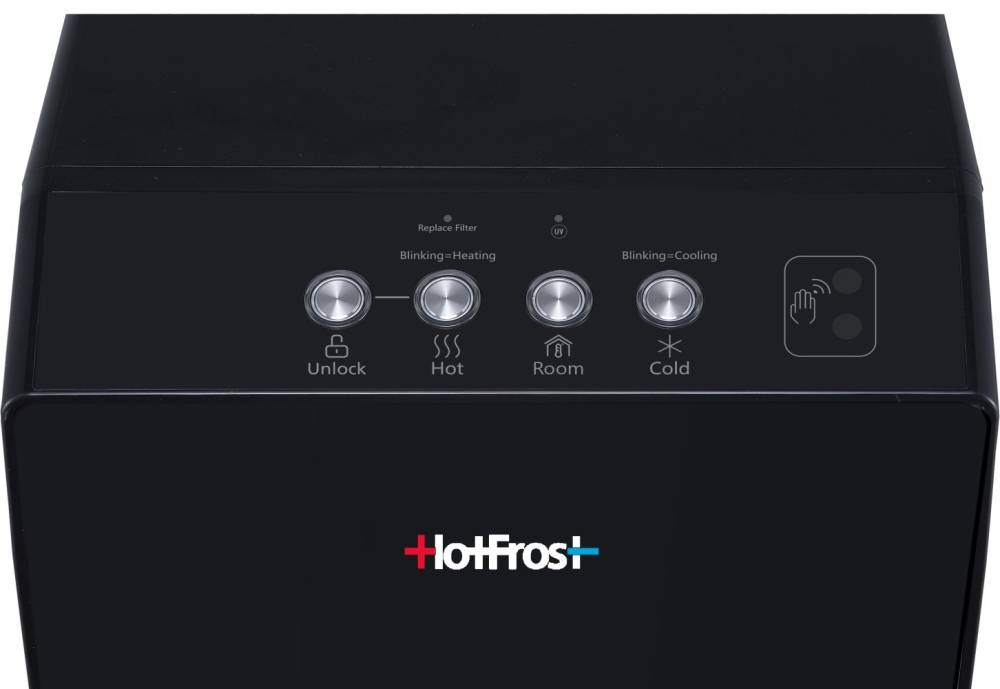 2020 рік став сигналом до розробки більш гігієнічної подачі води з кулера, ніж кнопкова та сенсорна. Тепер холодну воду з пуріфайєра V450PUFMI Black можна отримати без дотику до кнопок, досить підвести і утримувати долоню над поверхнею датчика.